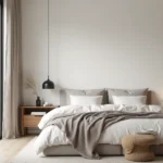 Los textiles minimalistas añaden calidez sin romper la armonía visual del espacio.